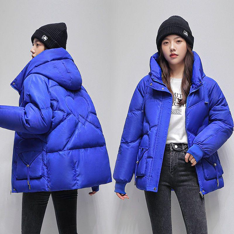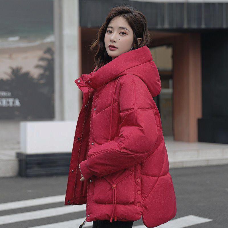 Красная блестящая зимняя новая корейская версия модной утолщенной свободной хлопковой одежды большого размера с подкладкой на пуху для женщин