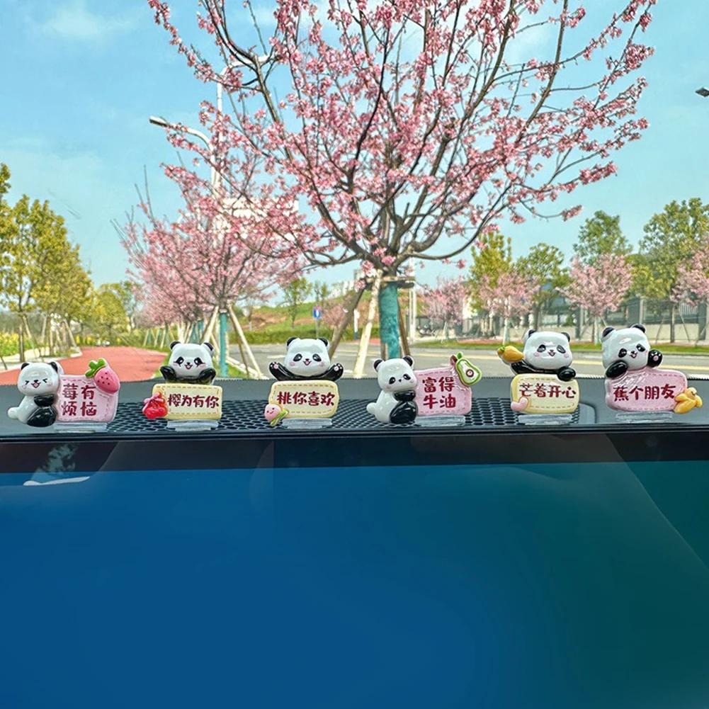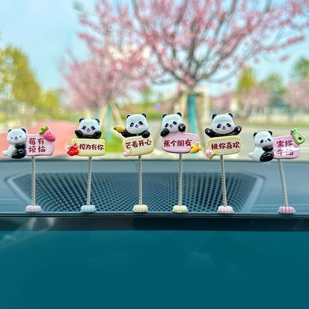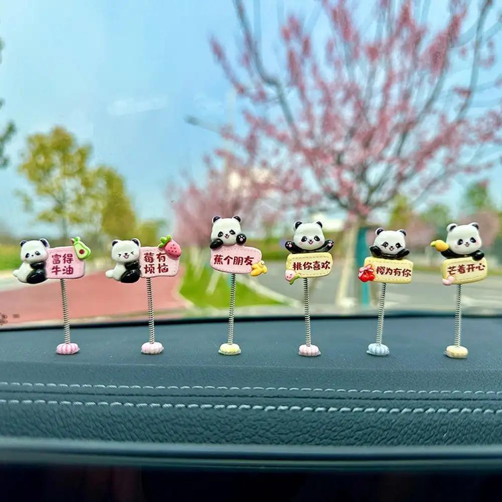 6 шт. Автомобильное зеркало заднего вида, украшение для центральной консоли, кукольное украшение из смолы, маленькие милые панды, аксессуары для интерьера, автомобильное украшение