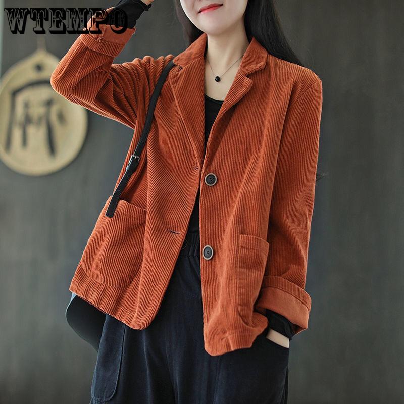 Винтажная куртка с воротником-стойкой, однотонная вельветовая короткая куртка, женская повседневная куртка с длинными рукавами, большой карман, весна-осень