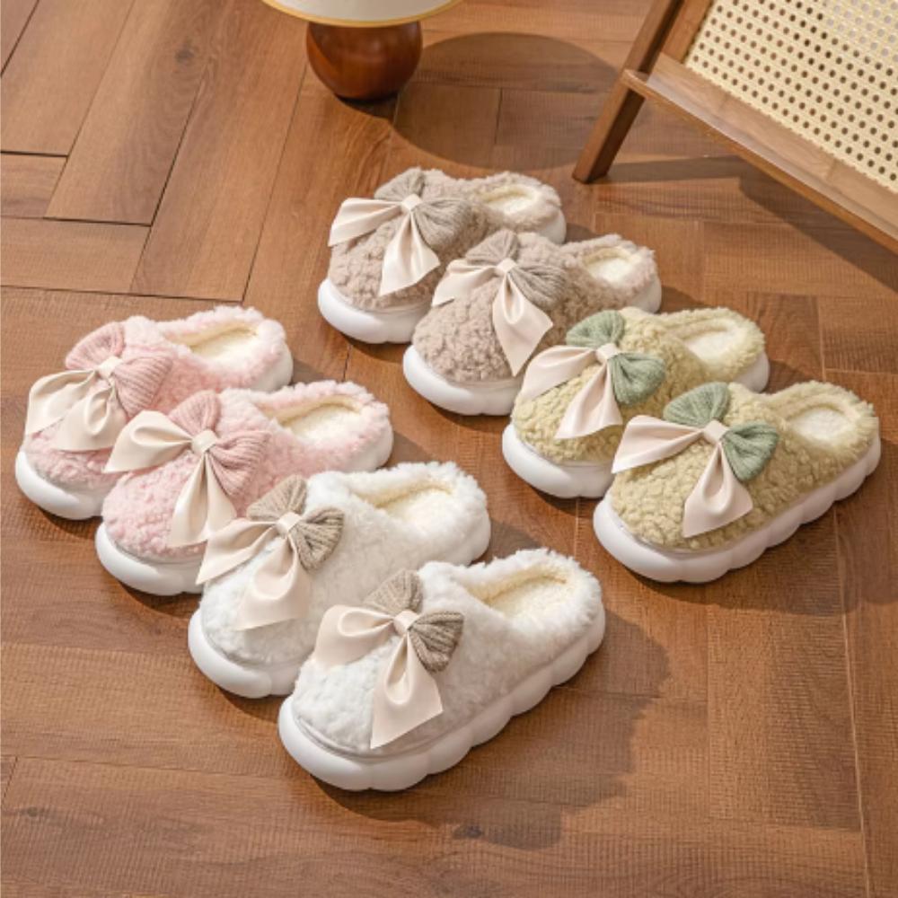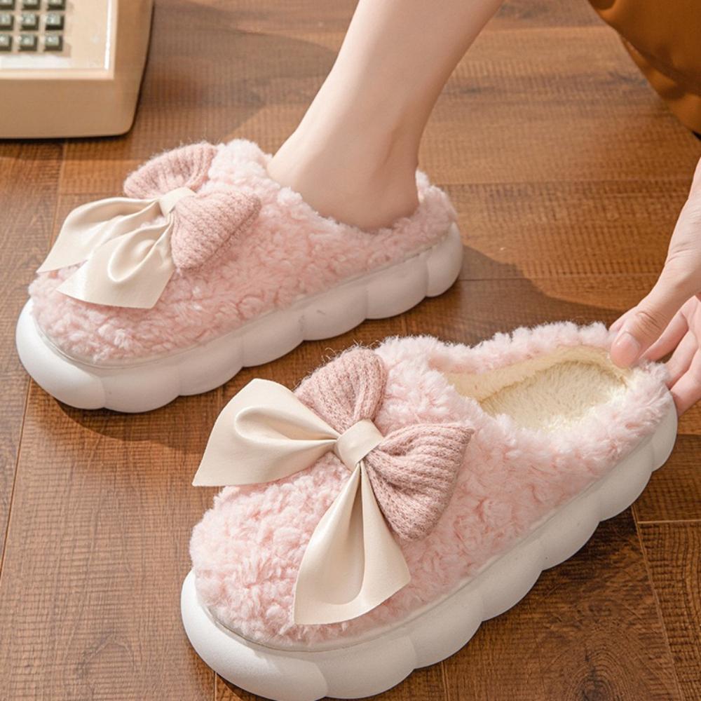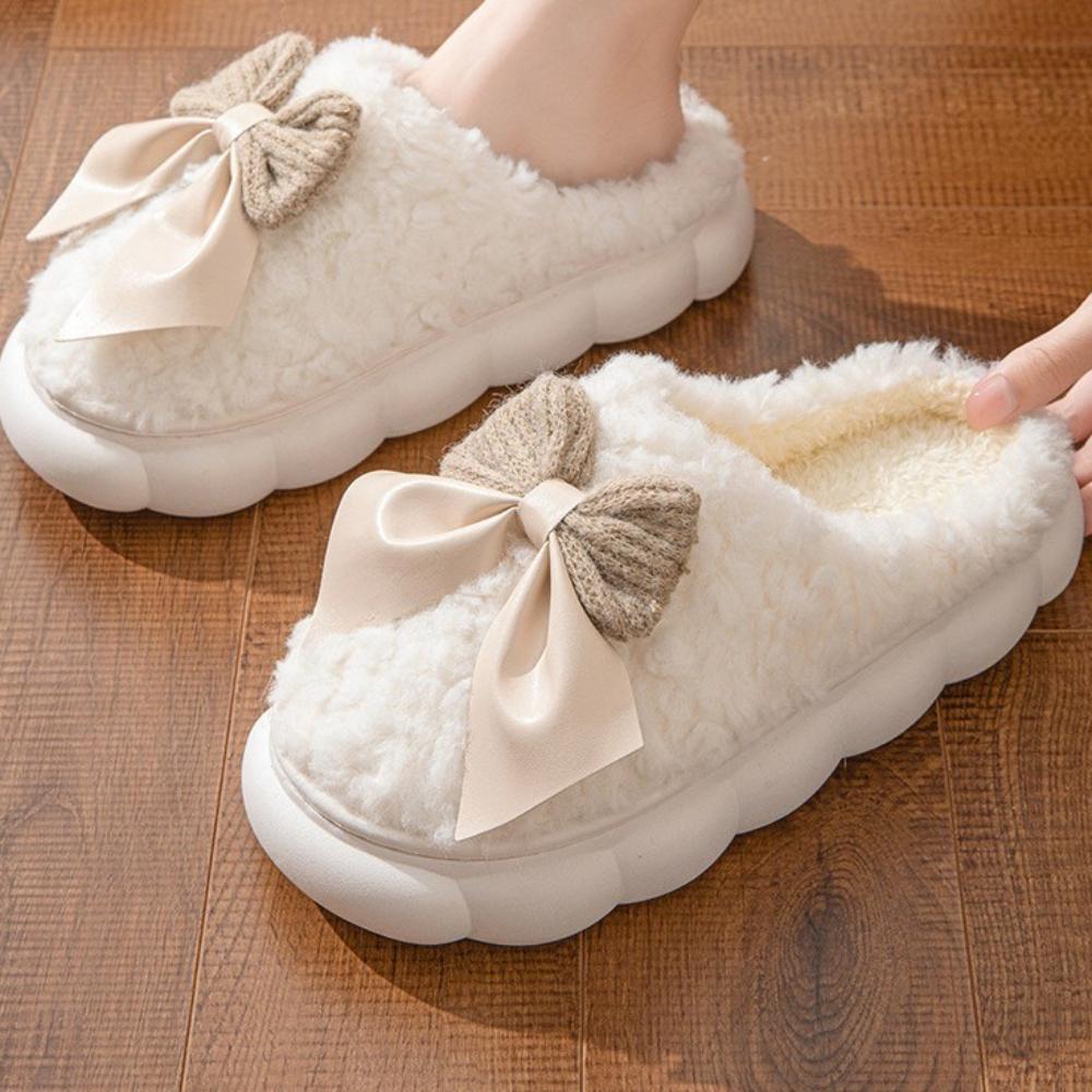 Модные хлопковые тапочки для женщин, осень и зима, толстая подошва, теплая женская обувь для дома, бант, плоская платформа, женские тапочки, размер 36-41