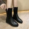 Модные зимние мягкие кожаные удобные теплые ботинки средней высоты для женщин с металлическими декоративными хлопковыми ботинками для мам, плюшевые плоские зимние ботинки размером 35-42