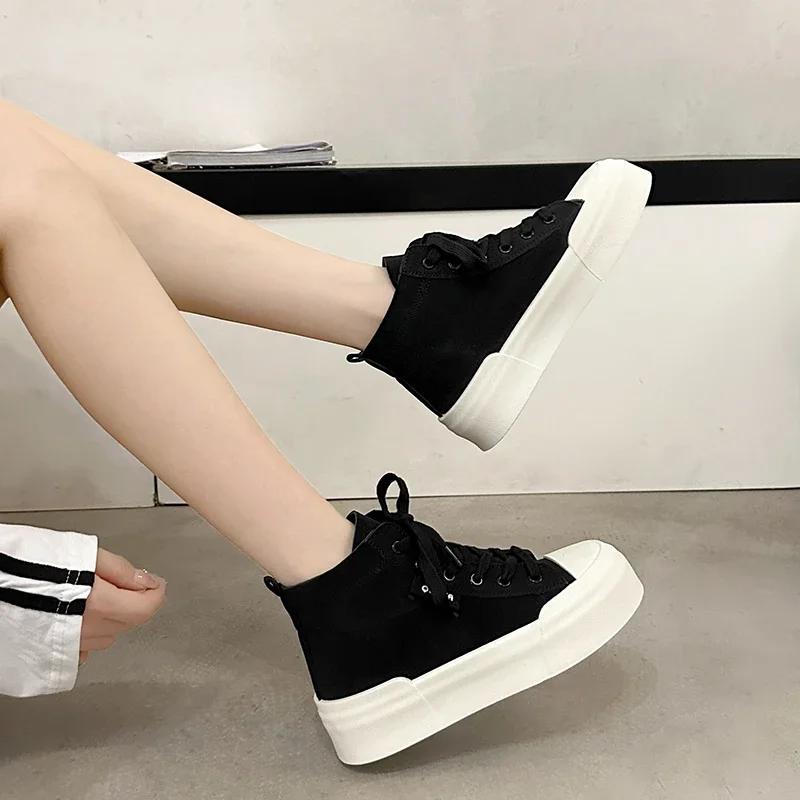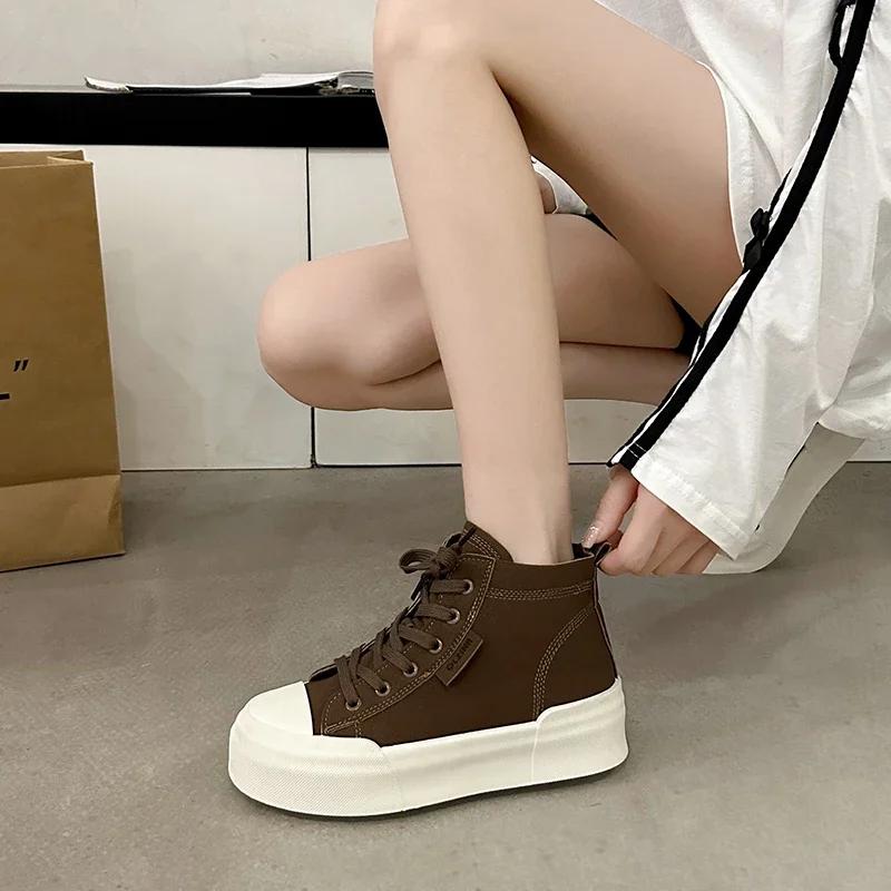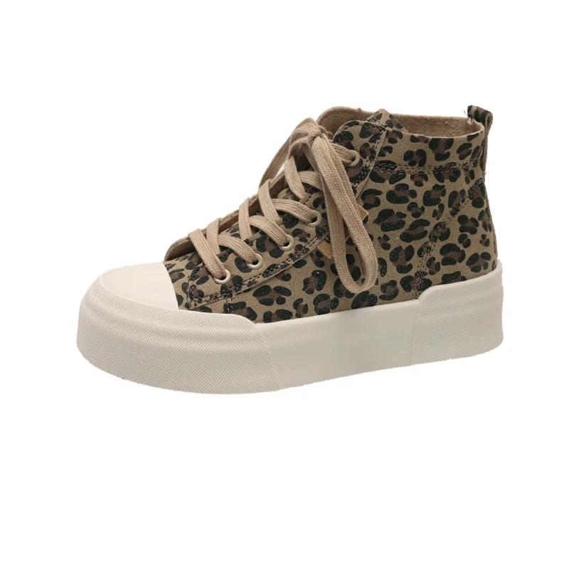 Модные парусиновые туфли 2024 года, новые повседневные женские туфли с толстой подошвой и высоким верхом, спортивная обувь с леопардовым принтом, ботинки