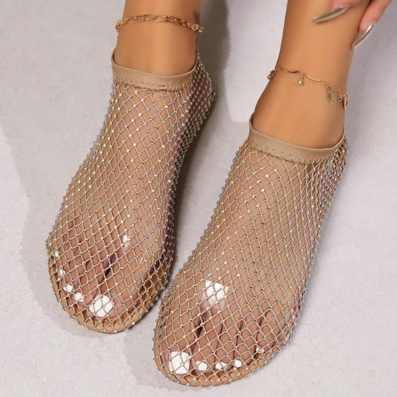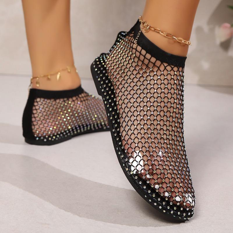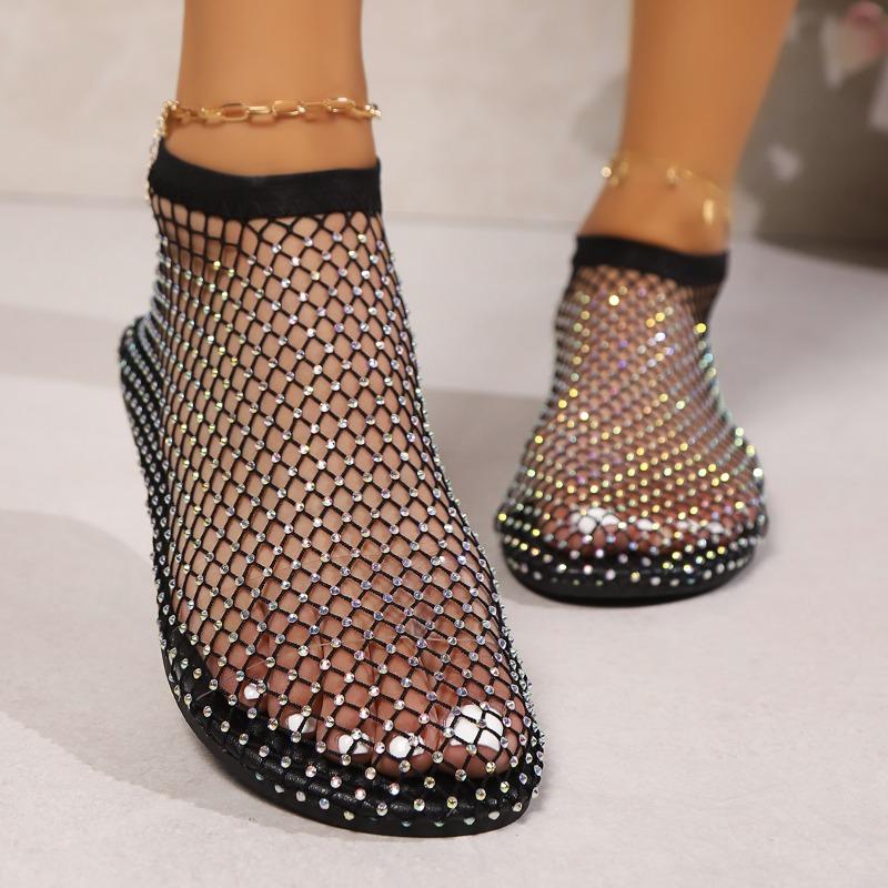 Модные женские новые роскошные брендовые сандалии с круглым носком и плоской подошвой, полые короткие сапоги, сексуальные туфли с водным бриллиантом и плоской подошвой
