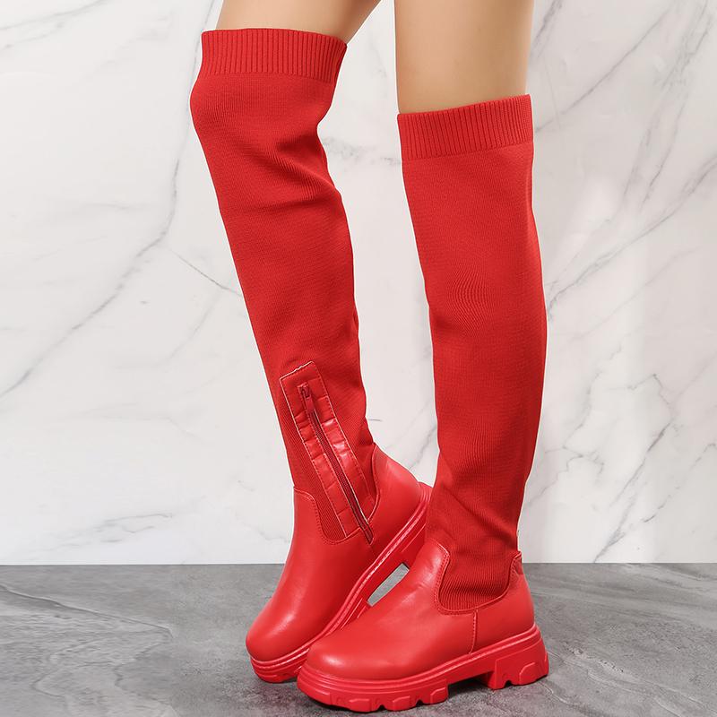 Модные женские сапоги, красные, черные, с круглым носком, высокие, с застежкой-молнией, высокие сапоги, осенне-зимние, выше колена, туфли для вечеринок, размер плюс 43