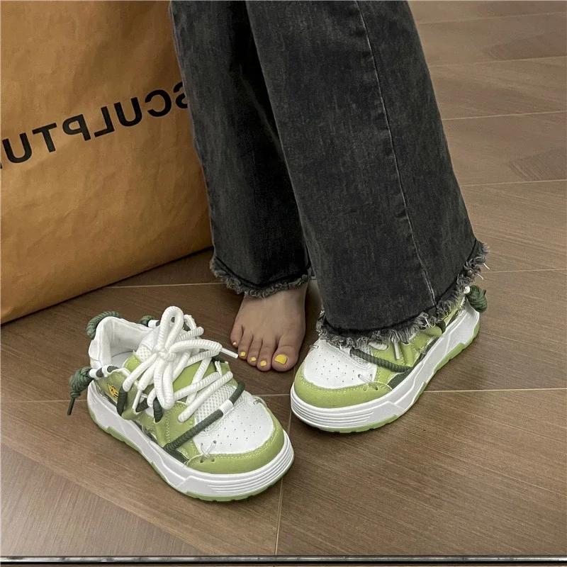 Модные зелено-голубые кроссовки на платформе, женские милые кроссовки со звездой, женские модные повседневные теннисные туфли, обувь на толстой подошве в стиле Харадзюку, вулканизированная обувь