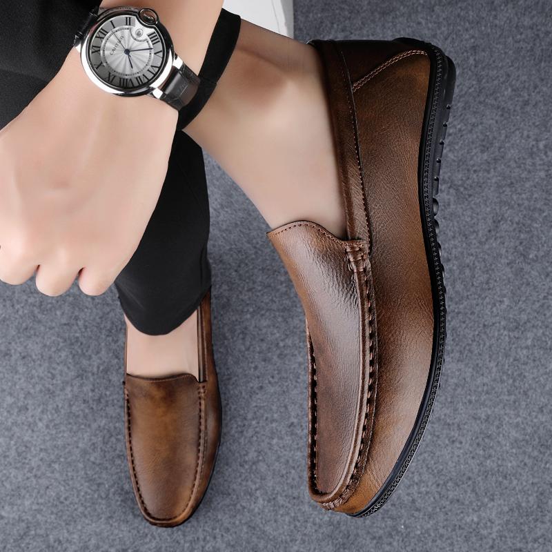 Модные высококачественные мужские коричневые лоферы в стиле ретро, роскошная мужская обувь, модные мужские туфли без застежек из натуральной кожи, универсальные деловые туфли на плоской подошве для мужчин