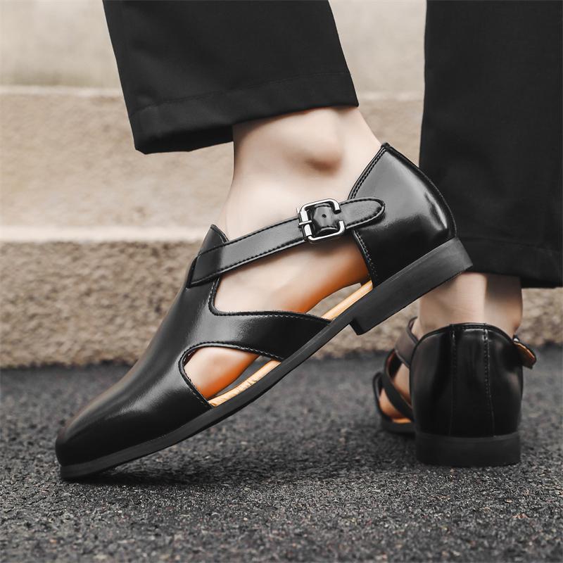 Модные роскошные брендовые мужские высококачественные сандалии для отдыха на открытом воздухе, удобные деловые кожаные повседневные туфли, ажурные дышащие сандалии для платья, мокасины