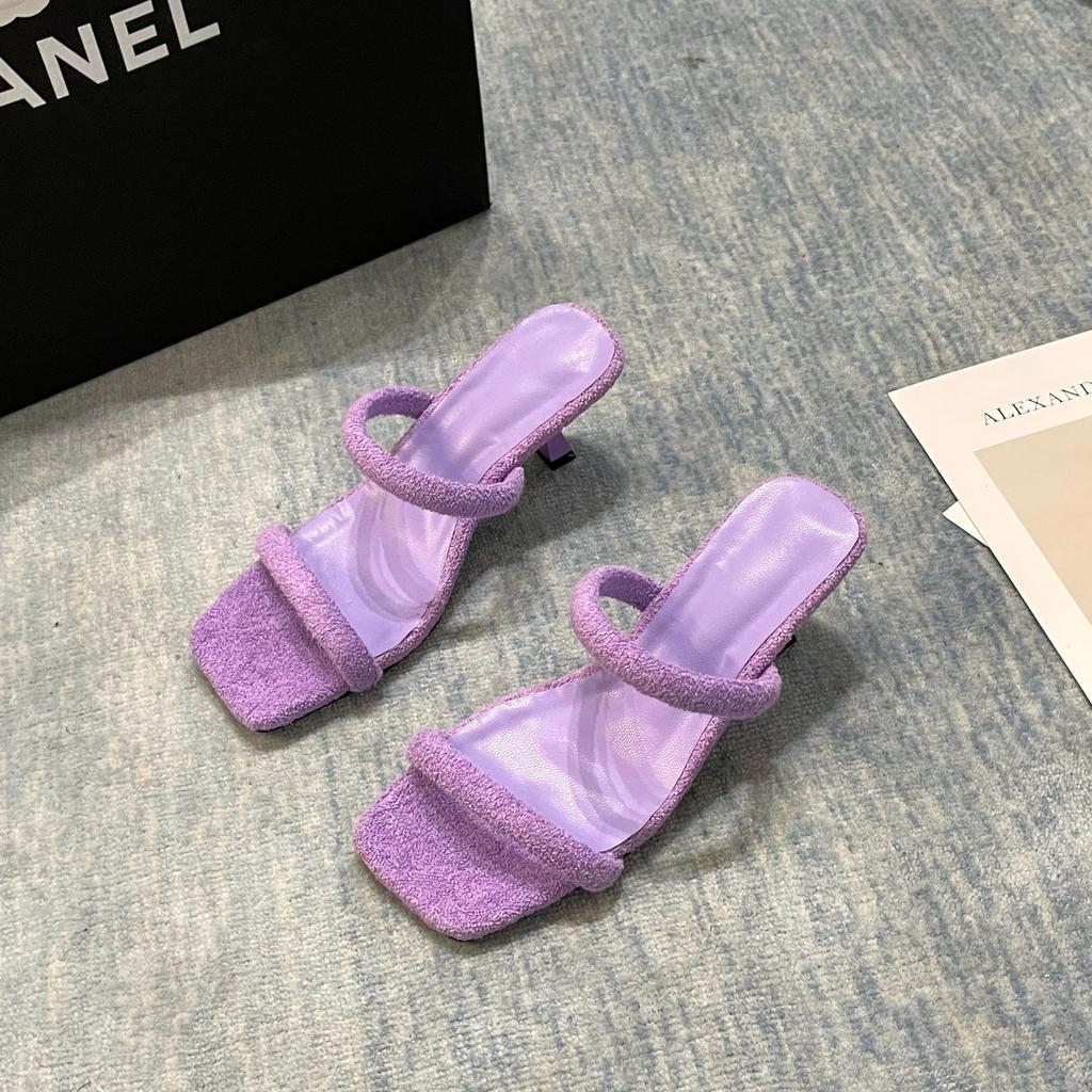 Мода 2024 года, лето, французские женские туфли на высоком каблуке, корейские женские туфли с квадратным носком, открытый носок, средний каблук, сексуальные сандалии, универсальная римская обувь
