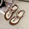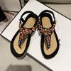 Модные роскошные женские сандалии 2024 года, новые летние бохо-сандалии на плоской подошве, женские повседневные пляжные туфли с бисером высокого качества для отдыха
