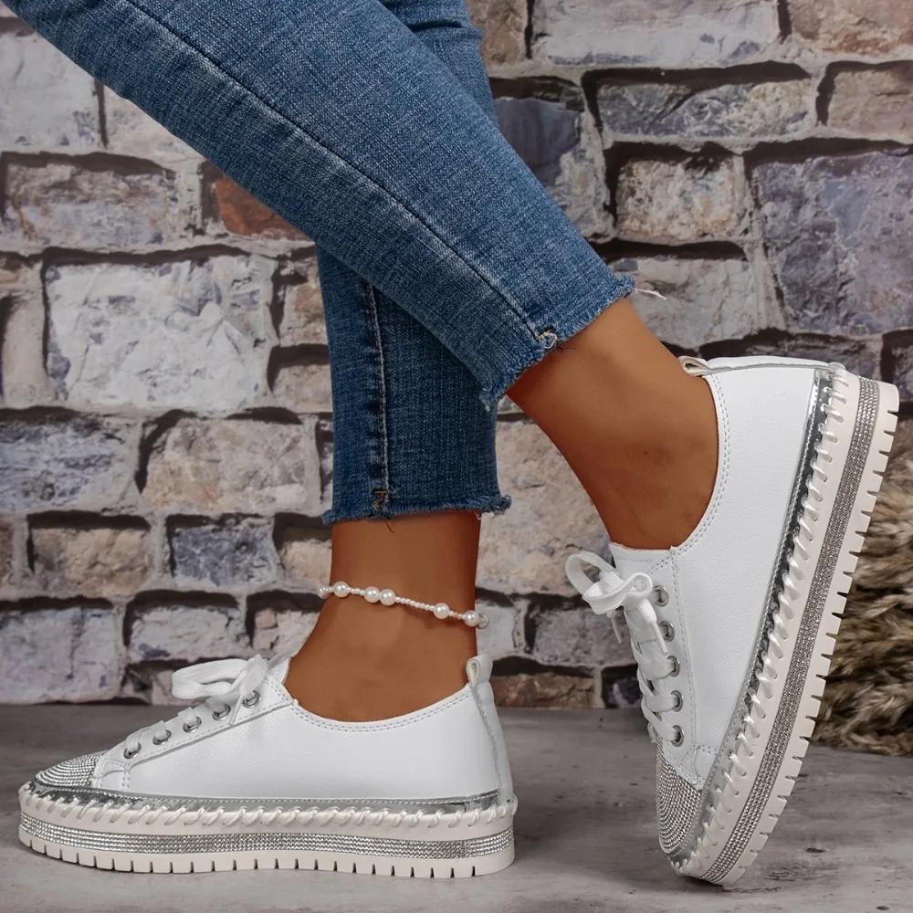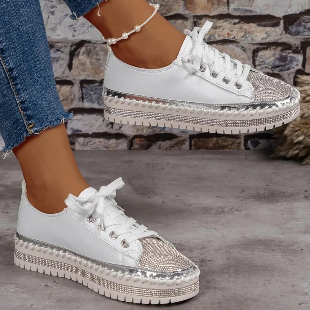 Модные женские кроссовки 2024 года, новые блестящие мокасины со стразами, повседневные туфли без застежек, толстые туфли со стразами, женские кроссовки на платформе, спортивные