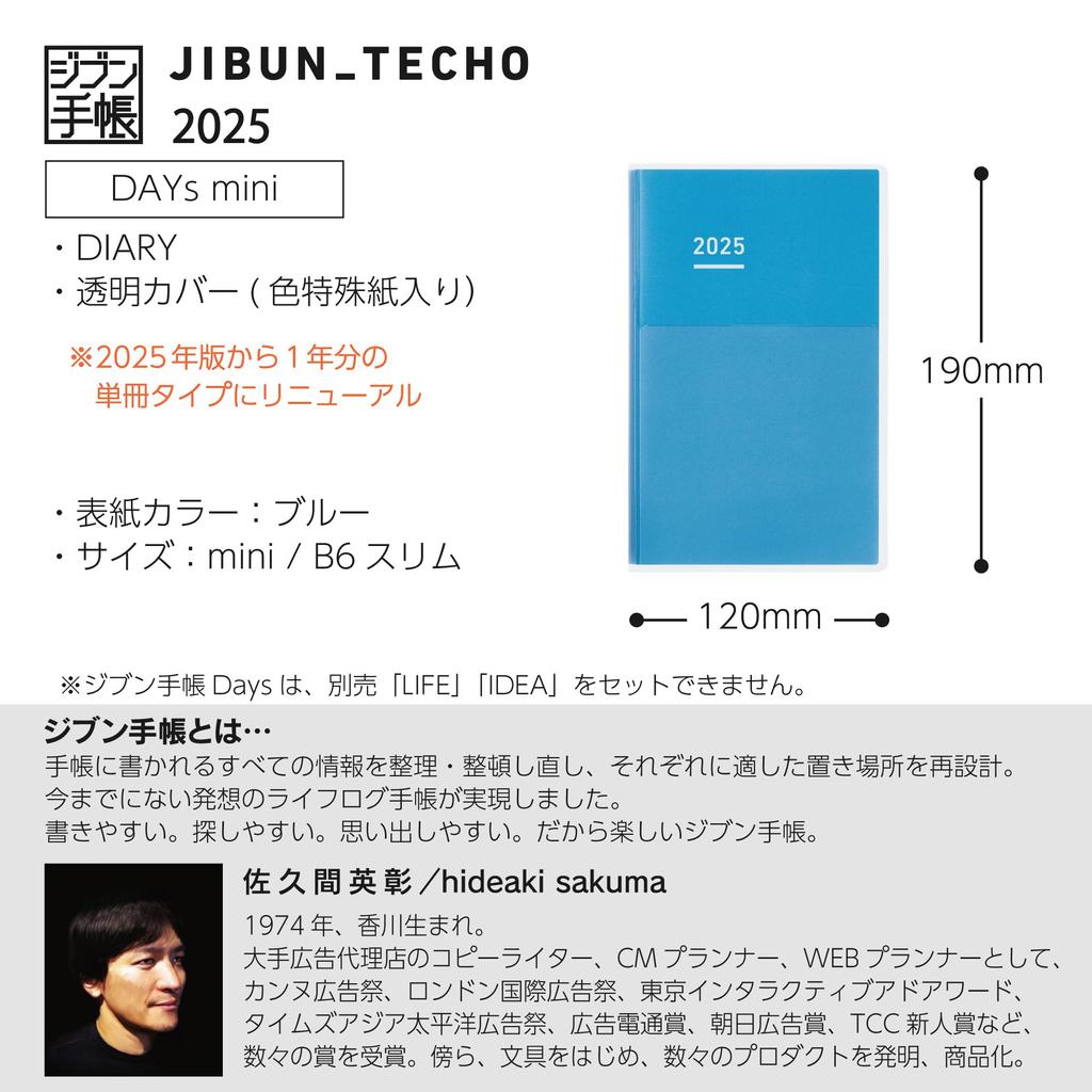KOKUYO Jibun Notebook DAYs mini Notebook 2025 Monthly Daily B6 Slim Blue Ni-JDM1B-25 Начинается в январе 2025 года
