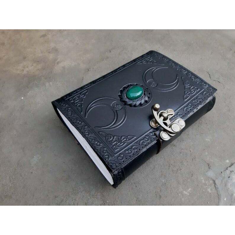 Кожаный журнал ручной работы с тройной луной и солнечной энергией, с тиснением на одном камне, ведьмовское ремесло
