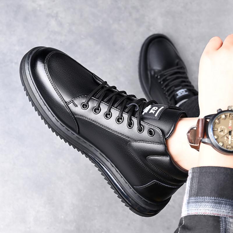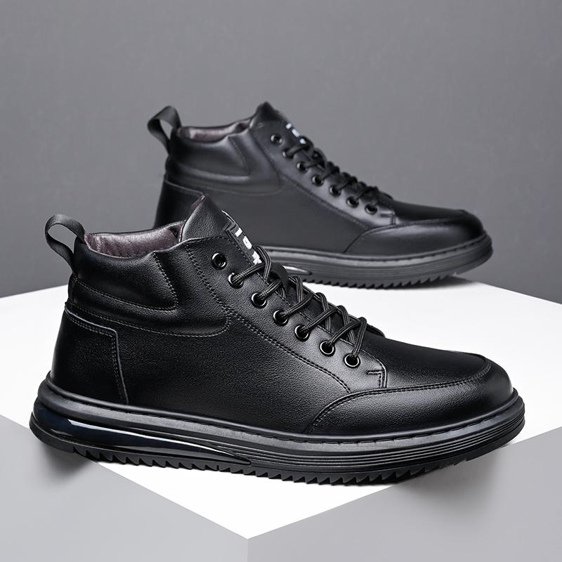Модные Высококачественные Зимние Ботинки из Короткого Плюша для Мужчин Повседневные Кожаные Ботильоны Нескользящая Уличная Толстая Подошва Рабочие Ботинки с Высоким Голенищем Кроссовки