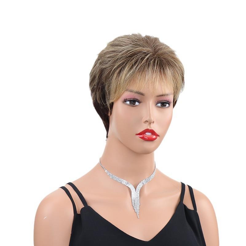 Короткие темно-коричневые смешанные светлые парики с челкой, многослойные парики из синтетических волос для женщин, термостойкие волокнистые парики