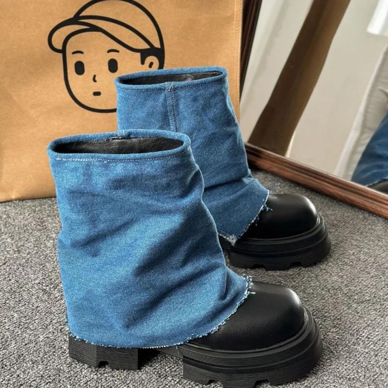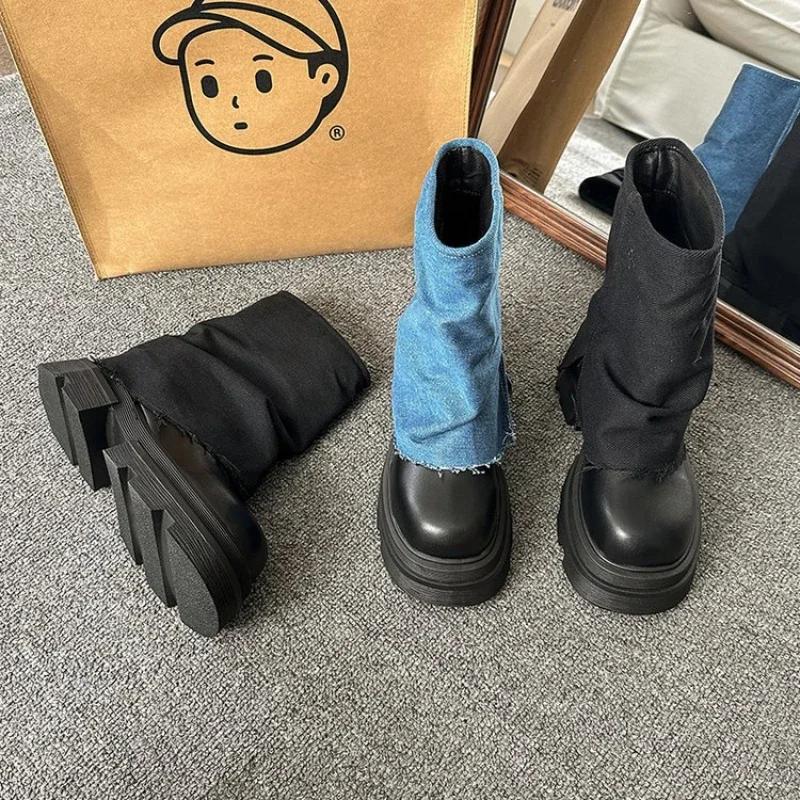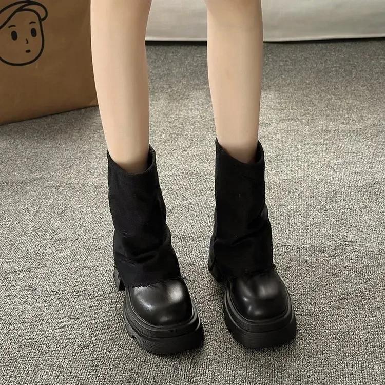 Мода Осень Зима Новые Модные Ботинки Женские Повседневные Брюки Ботинки Толстая подошва До середины голени Ботинки Головные Короткие Ботинки Роскошные Прочные
