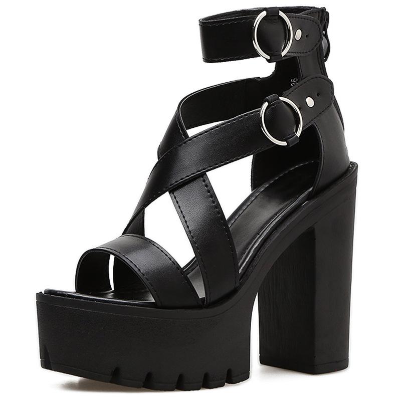 Модные женские босоножки с открытым носком, лето 2024 г., на высоком каблуке с перекрестными ремешками, сандалии для ночного клуба, толстые каблуки, женская обувь на толстой подошве