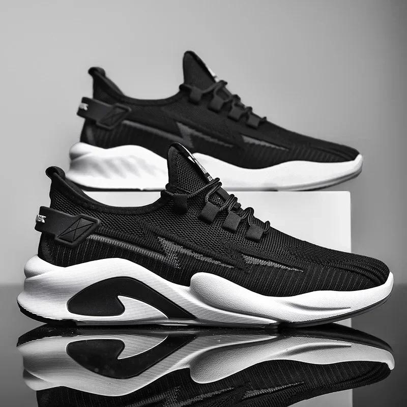 Модные мужские вулканизированные туфли 2024 года, летние плетеные мужские туфли, дышащие сетчатые кроссовки на шнуровке, уличные кроссовки с сетчатой поверхностью высокого качества