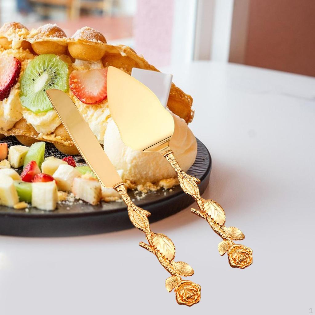 Набор ножей для свадебного торта, элегантная ручка-роза, для резки подарков, золото