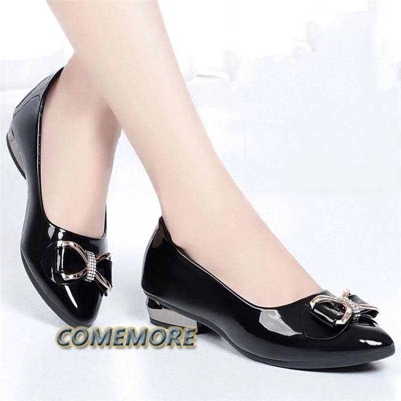 Модные женские модные милые золотистые квадратные элегантные каблуки на низком каблуке для ночных клубов женские черные высококачественные офисные весенние туфли из нескользящей искусственной кожи