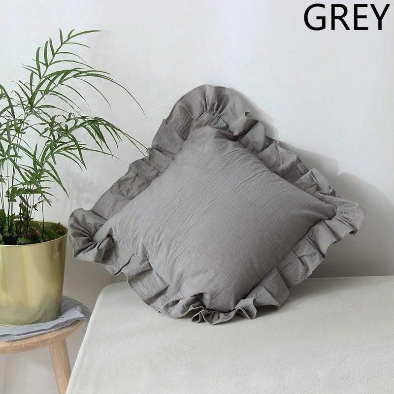 Чехол на подушку из хлопка Чехол на подушку Чехлы на подушки для дивана, кресла, однотонный, с оборкой 45 см HomeDecor