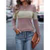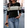 Женская футболка с круглым воротником и длинными рукавами, цветные блоки, мягкая женская одежда, топ, пуловер, повседневные базовые туники, облегающие футболки
