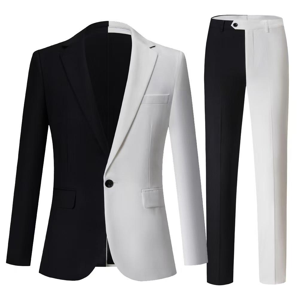 Однотонные черно-белые костюмы для мужчин, комплект из 2 предметов, модный приталенный пиджак, брюки, формальный деловой свадебный смокинг для мужчин, повседневная одежда