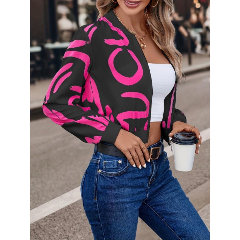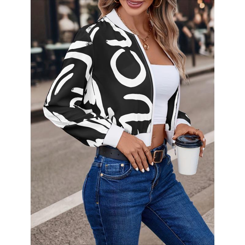 Женская куртка с геометрическим узором и принтом в стиле минимализма с длинным рукавом, прямая, повседневная, для поездок на работу