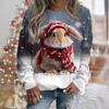 Женская одежда Cross border, горячая распродажа, новый 3D-принт с рождественским кроликом, милый круглый вырез, футболка с длинными рукавами