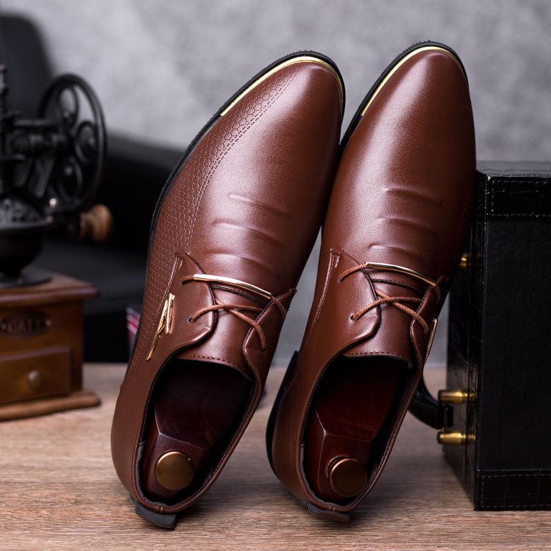 Модная окантовка Мужские туфли-оксфорды Английский острый деловой корейский Мужские кожаные формальные туфли Быстрые продажи Производители внешней торговли