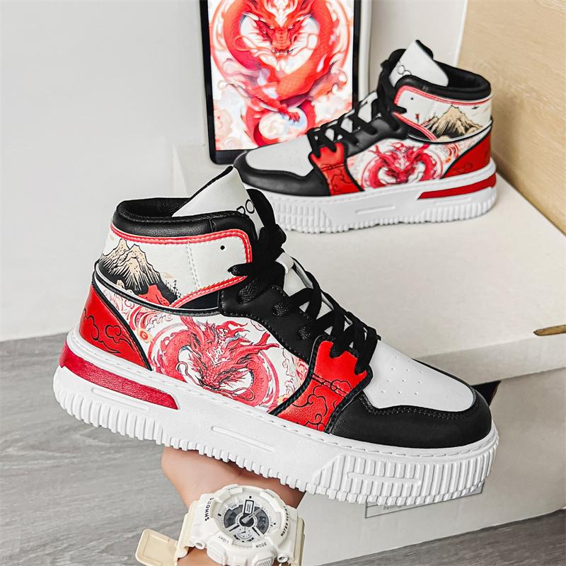 Модные мужские туфли для скейтбординга с китайским драконом, модные повседневные красные женские туфли для скейтбординга, уличные кожаные мужские кроссовки на платформе