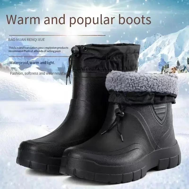Модные мужские дождевые ботинки Зимние теплые резиновые дождевые сапоги Водонепроницаемые рабочие ботинки для мужчин Нескользящие сапоги для рыбалки Botas Lluvia Hombre