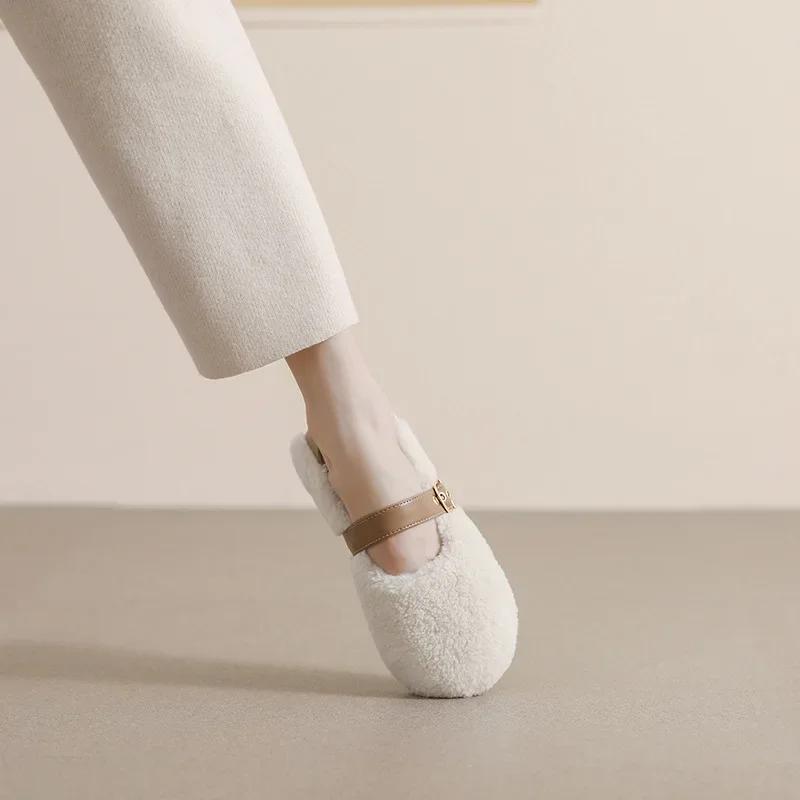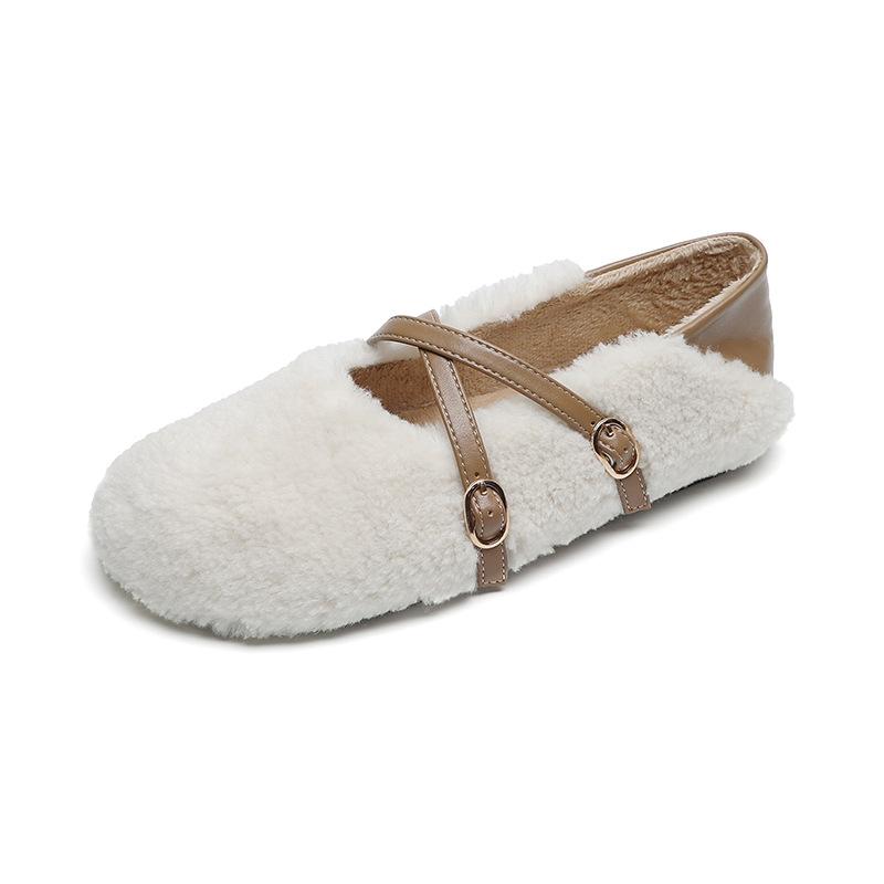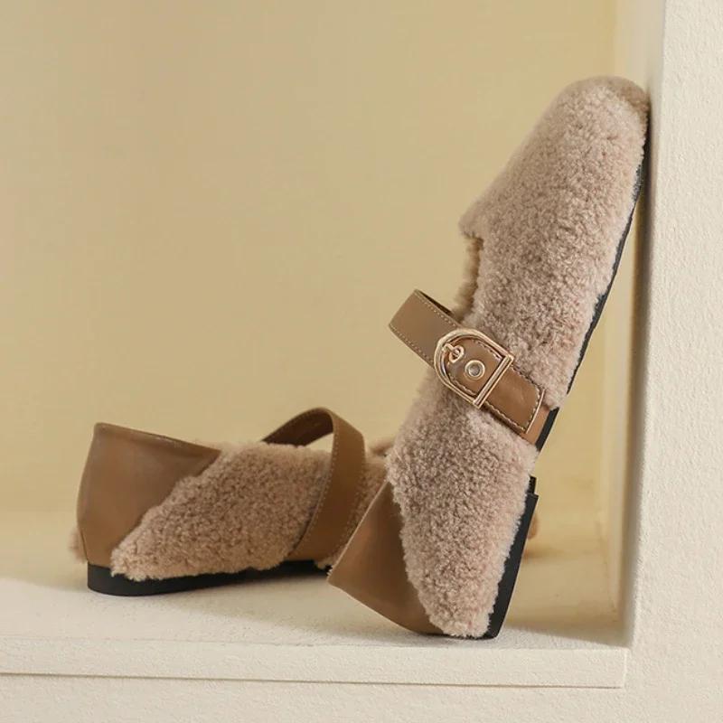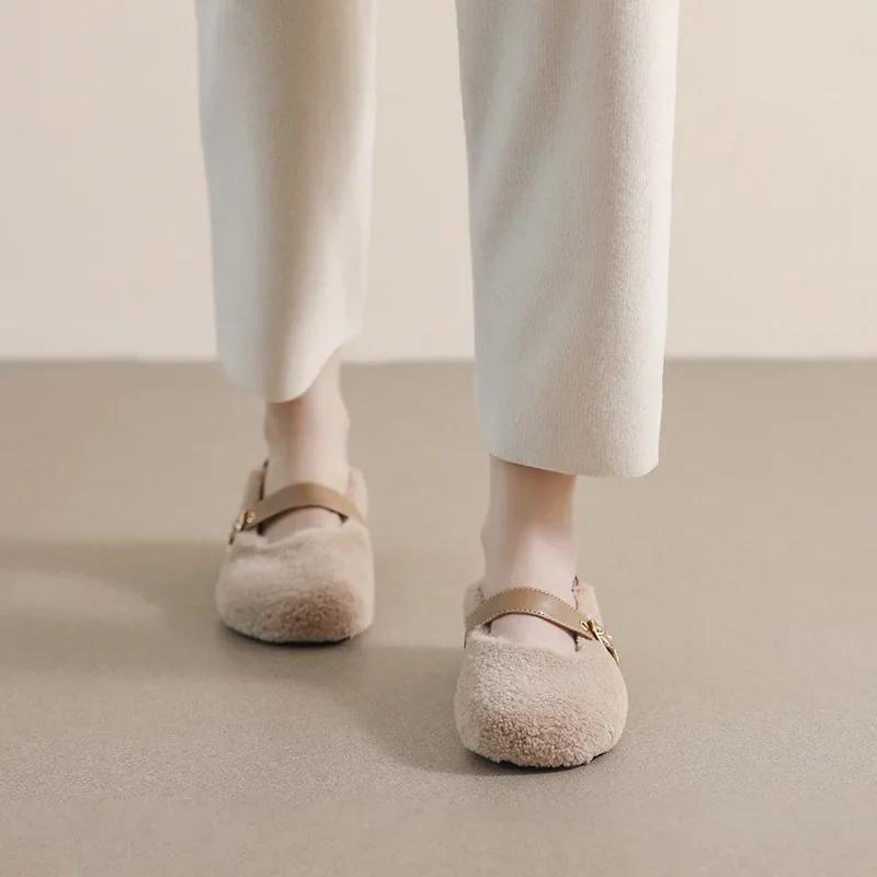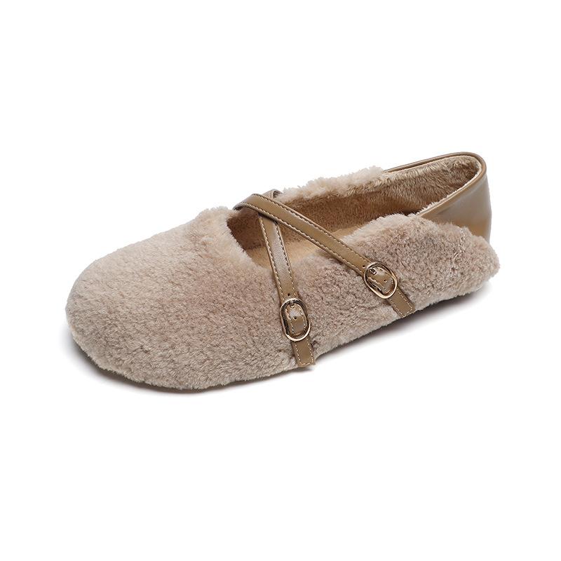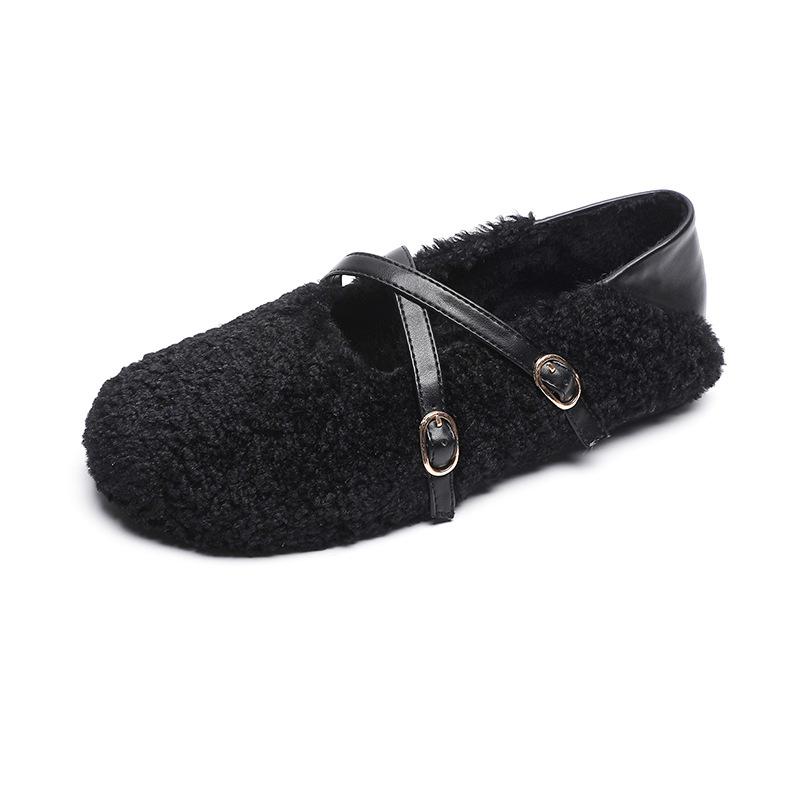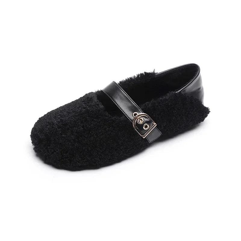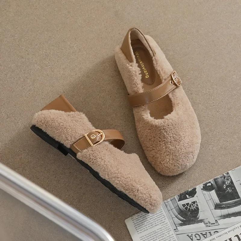 Модные плюшевые туфли женские уличные осенне-зимние теплые туфли Мэри Джейн на мягкой подошве женские туфли на плоской подошве с круглым носком Chaussure Femme