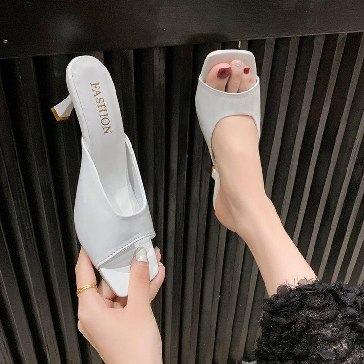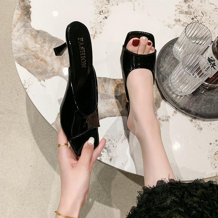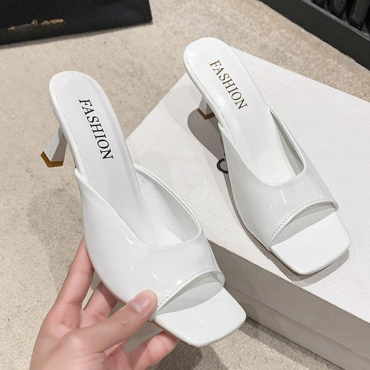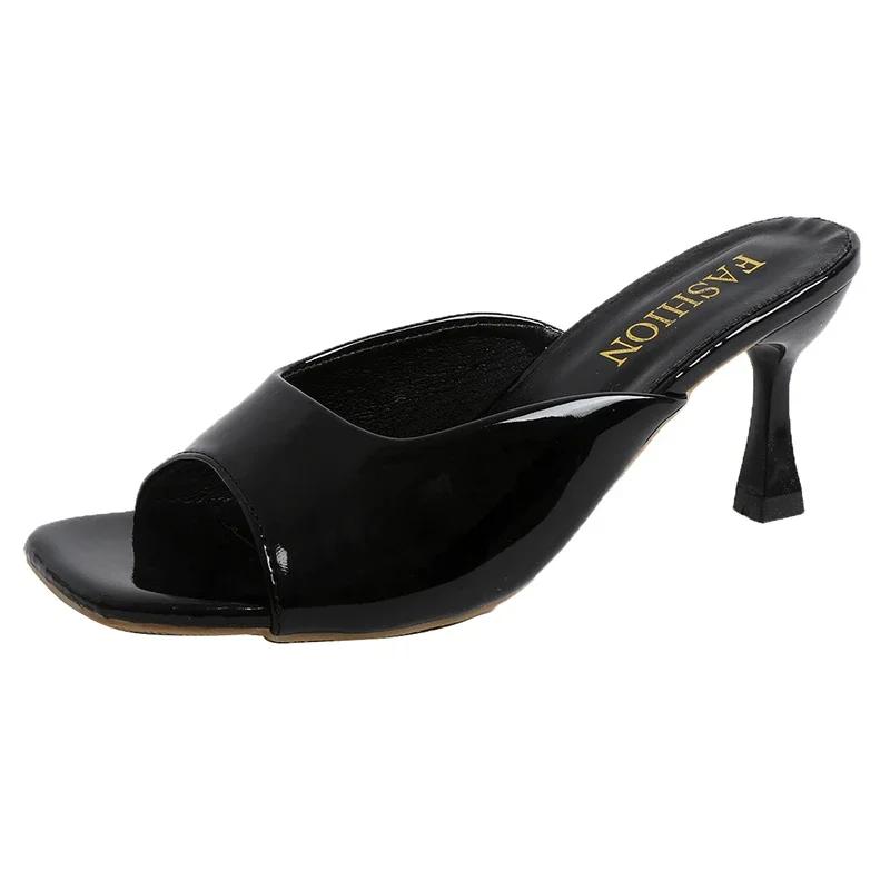 Модные женские тапочки 2024 года, летняя мода, простые, однотонные, с квадратным носком, на шпильках, удобные, дышащие, сандалии на высоком каблуке с неглубоким носком