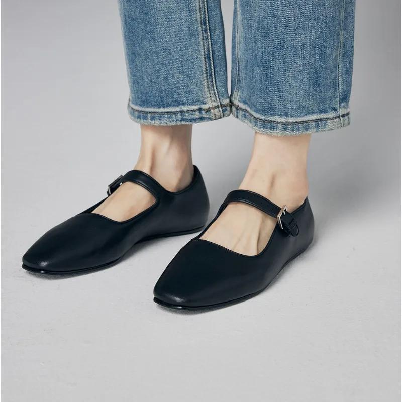 Модные минималистичные кожаные туфли весна/осень для женщин, новые однобортные туфли Мэри Джейн с пряжкой, женские туфли-лодочки на плоской подошве
