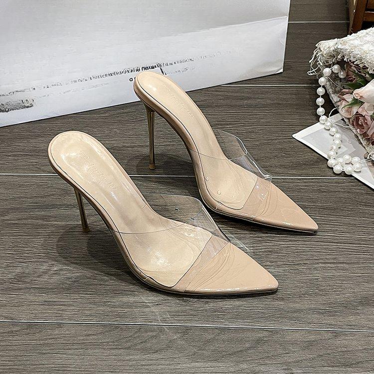 Модные женские туфли на высоком каблуке, летние туфли-лодочки из ПВХ, сандалии для вечеринок 2024, нейлоновые домашние тапочки для дома, Sapatiras Mujer, простой стиль