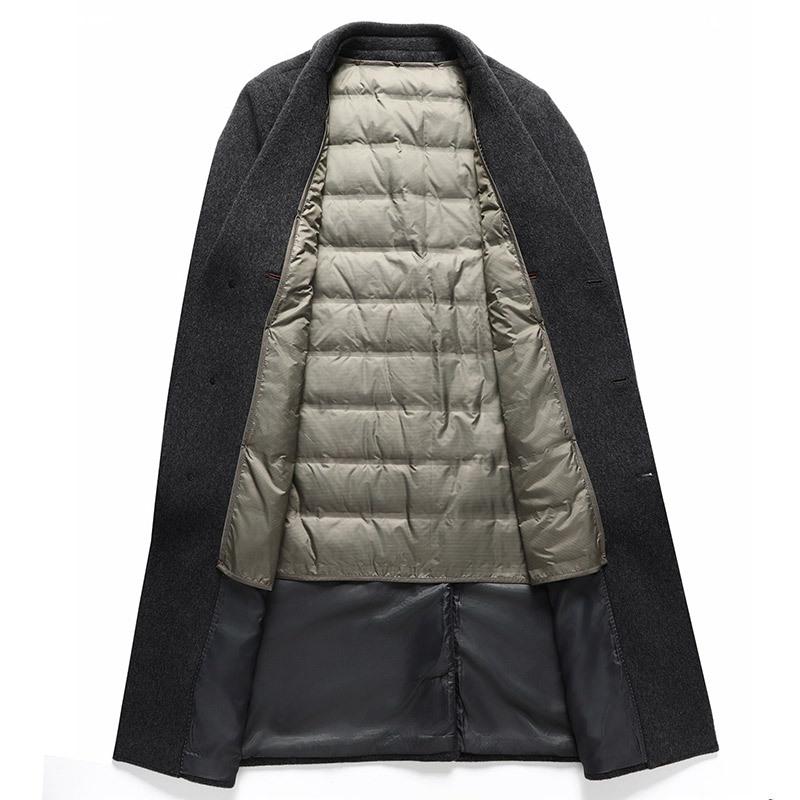 Один или два, наденьте шерстяное пальто, тренчкот, мужскую белую куртку на утином пуху, длинное шерстяное пальто в деловом стиле выше колена.