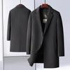 Зимнее мужское шерстяное пальто с подкладкой из гусиного пуха, средней длины, с воротником-стойкой, двухстороннее шерстяное пальто