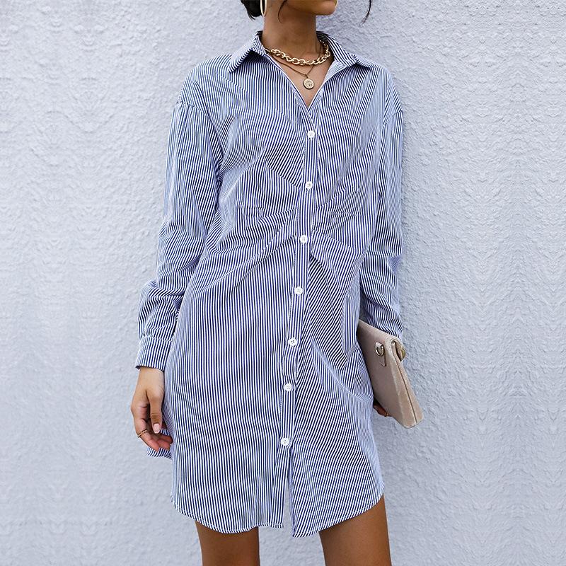 YYFS Женская мода повседневная весна осень полосатый принт длинный рукав воротник поло блузки и рубашки