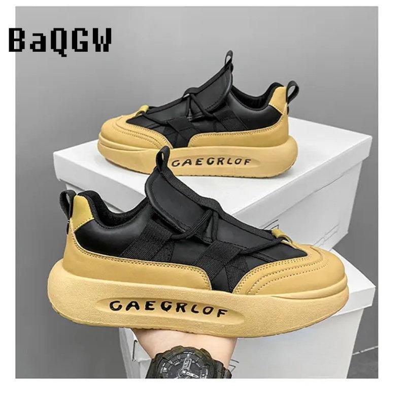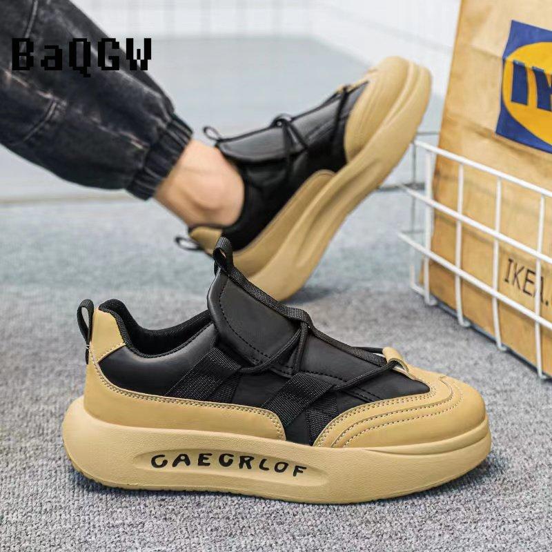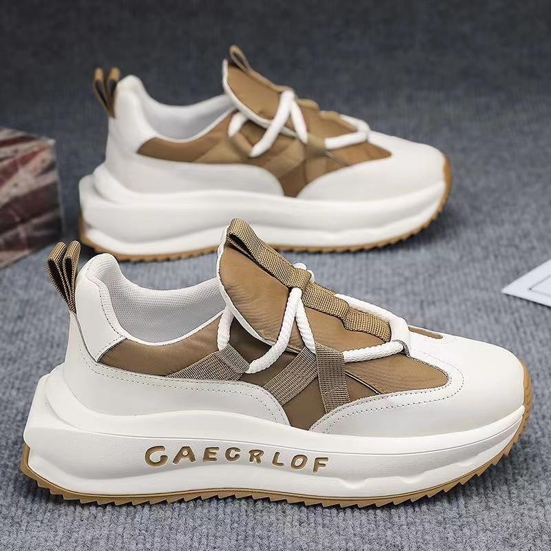 Модные мужские повседневные кроссовки Модные кожаные цветные блоки Дышащие Роскошные массивные кроссовки Увеличение роста Платформа Лоферы