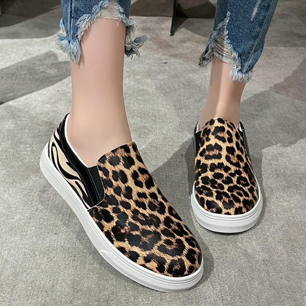 Модные женские туфли Zapatillas De Deporte, новые модные туфли с круглым носком, леопардовый узор, плоские вулканизированные туфли на плоской подошве для женщин