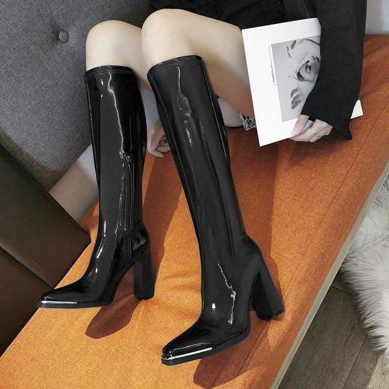 Мода 2024 года, женские новые модные высокие сапоги, удобные туфли на высоком каблуке с квадратным носком для женщин, элегантные длинные модные сапоги, зимняя женская обувь