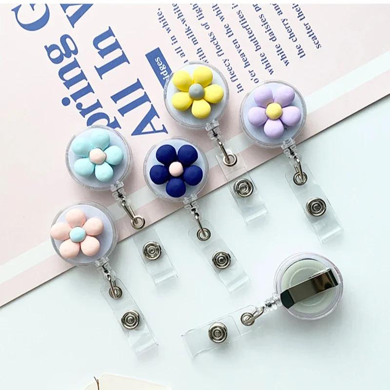 Женский милый цветок выдвижной значок катушка для удостоверения личности шнурок для имени белый воротник держатель для бейджа катушки брелок держатель для карт аксессуары