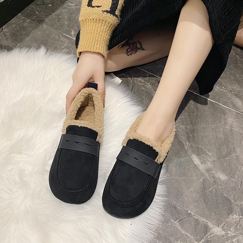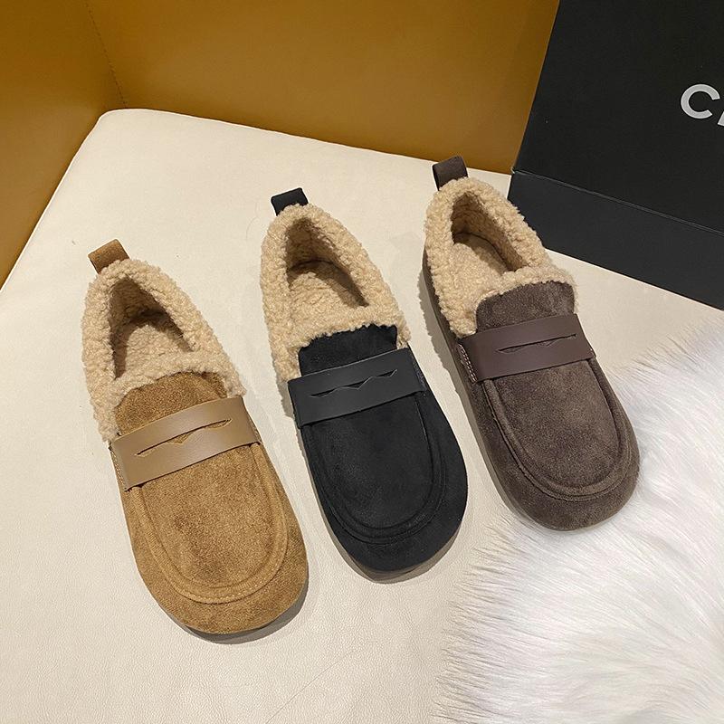 Модная корейская версия плюшевой обуви для женщин 2024 года, осень-зима, новые туфли из сои на мягкой подошве для женщин, мокасины с плоской подошвой