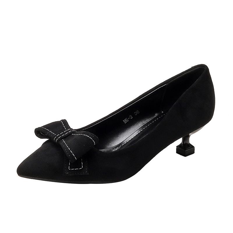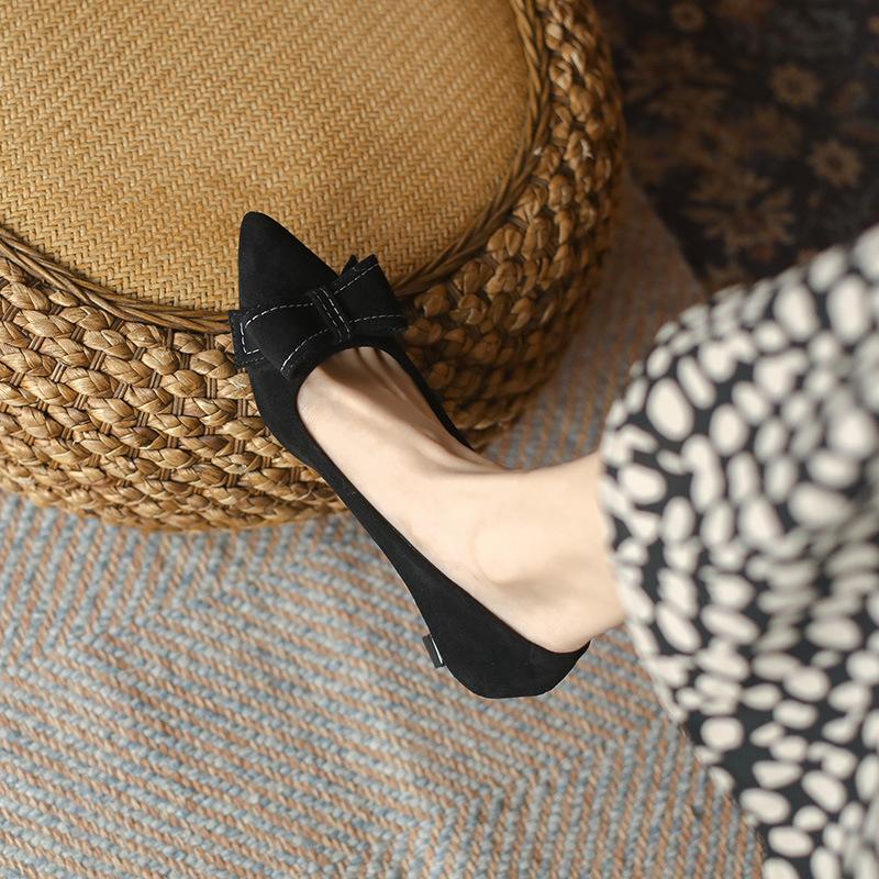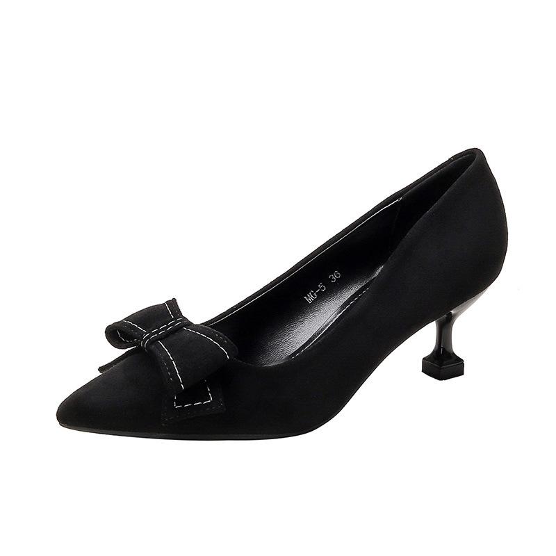Модные туфли маленького размера 33 34 Модные черные туфли на тонком каблуке с бантом, замшевые туфли на каблуке-кошке, с заостренным кончиком, с бантом, туфли на низком толстом каблуке для офисных работников