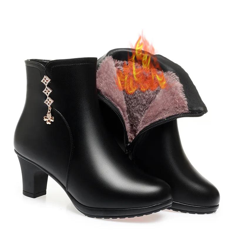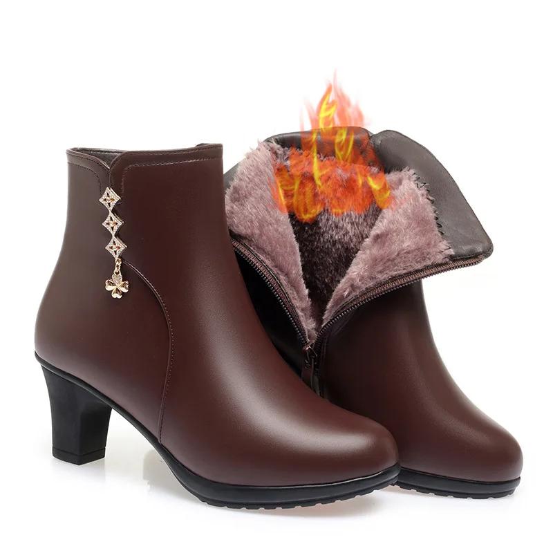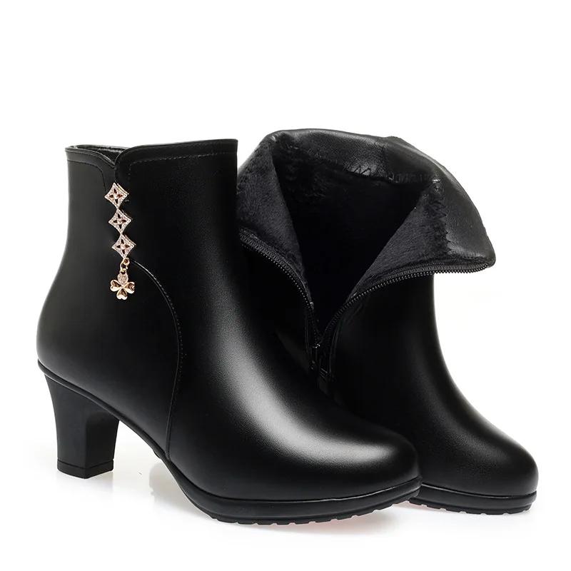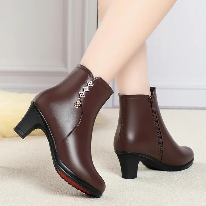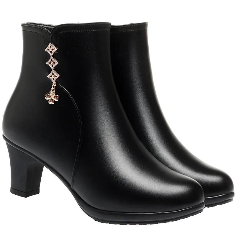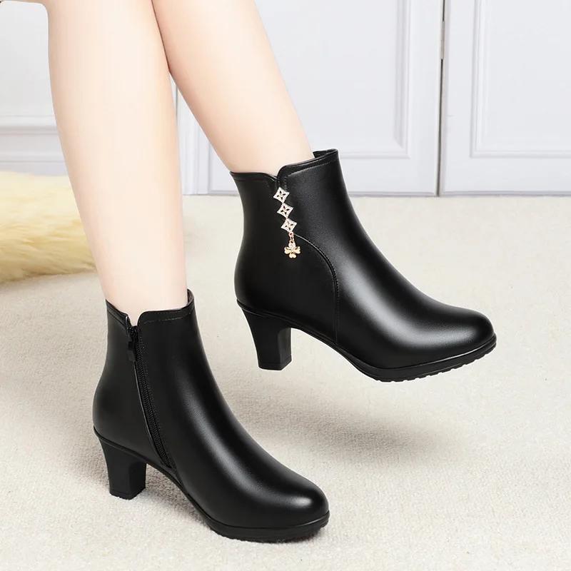 Женские осенне-зимние новые короткие ботинки Уличная нескользящая кожаная обувь Бархатные хлопковые ботинки с мягкой подошвой Повседневная модная женская обувь