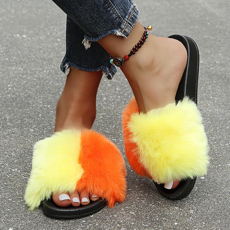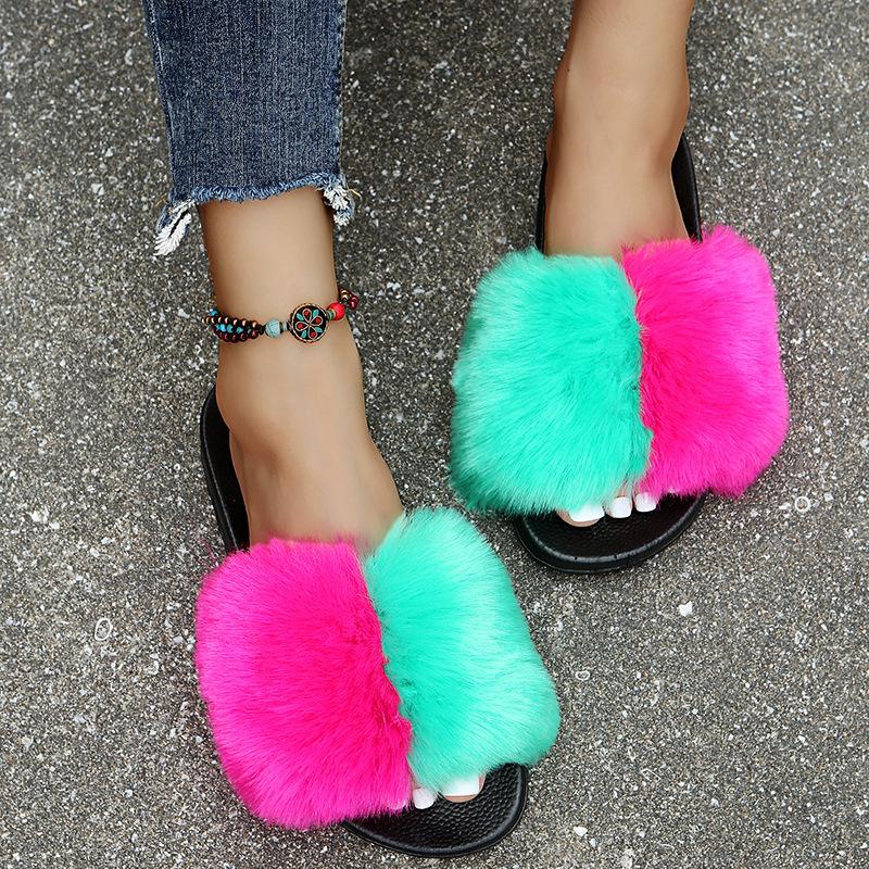 Мода 2024 года, новые модные меховые шлепанцы, теплые женские шлепанцы на платформе, размер плюс 42, меховые шлепанцы для женщин, мягкие меховые туфли на плоской подошве