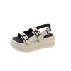 Модные сандалии на толстой подошве для женщин, лето 2024 г., новые европейские и американские двухслойные пляжные сандалии для женщин, туфли на платформе, сандалии