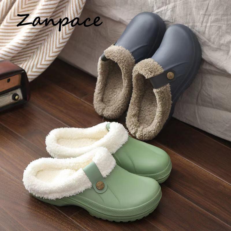 Модные зимние осенние тапочки 2024 года, водонепроницаемые домашние пушистые тапочки для женщин, теплые плюшевые домашние тапочки для женщин и мужчин, нескользящие шлепанцы