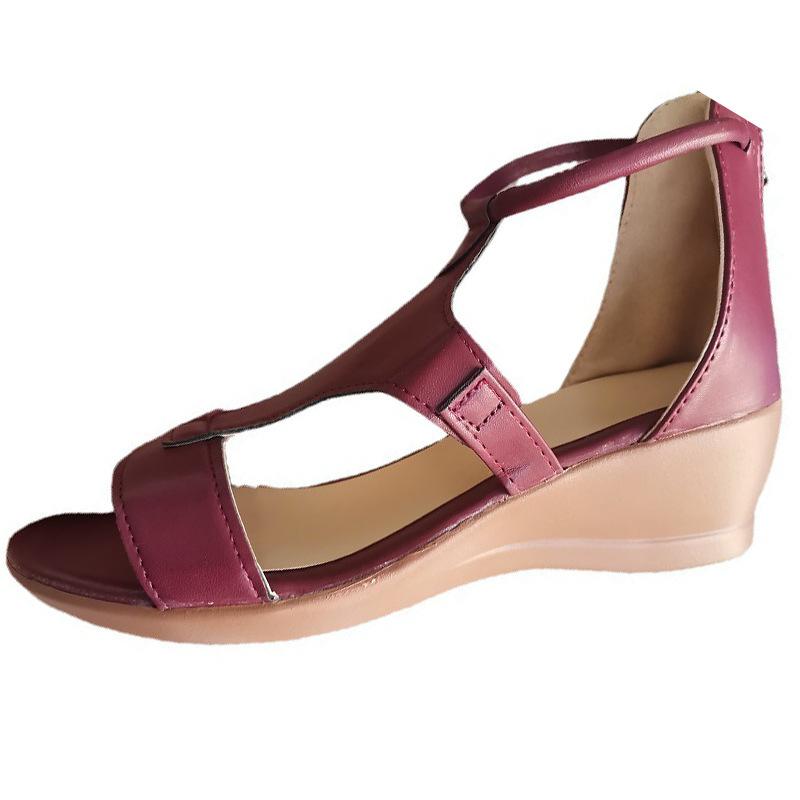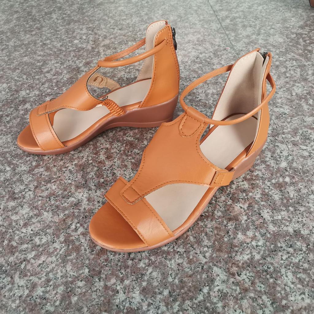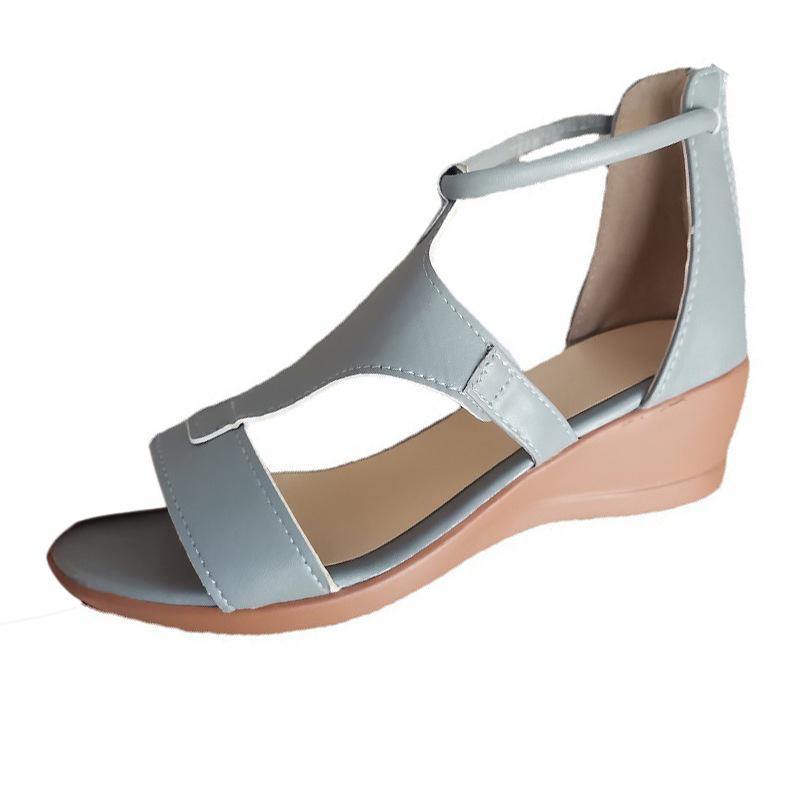 Модные женские босоножки на танкетке больших размеров 2024 года, летние новые европейские туфли на танкетке с одним словом для женщин, гладиаторские сандалии с молнией сзади