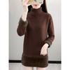 Зимний новый флисовый утолщенный термобелье базовый слой свитер женский с высоким воротом и длинными рукавами миди платье